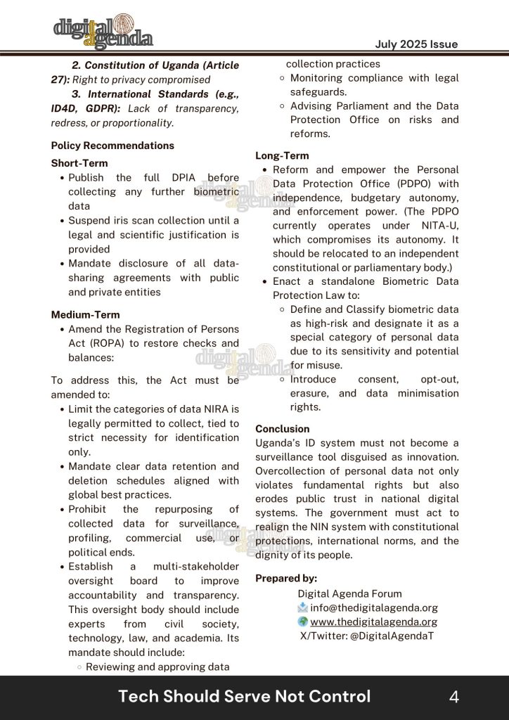 In an open letter dated 16th June 2025 (Reference P2025-06-0001), the Digital Agenda Forum wrote to the Personal Data Protection Office (PDPO-Ug), expressing deep concern over the ongoing mass National Identification Number (NIN) renewal exercise currently being implemented by the National Identification and Registration Authority (NIRA). Read More……